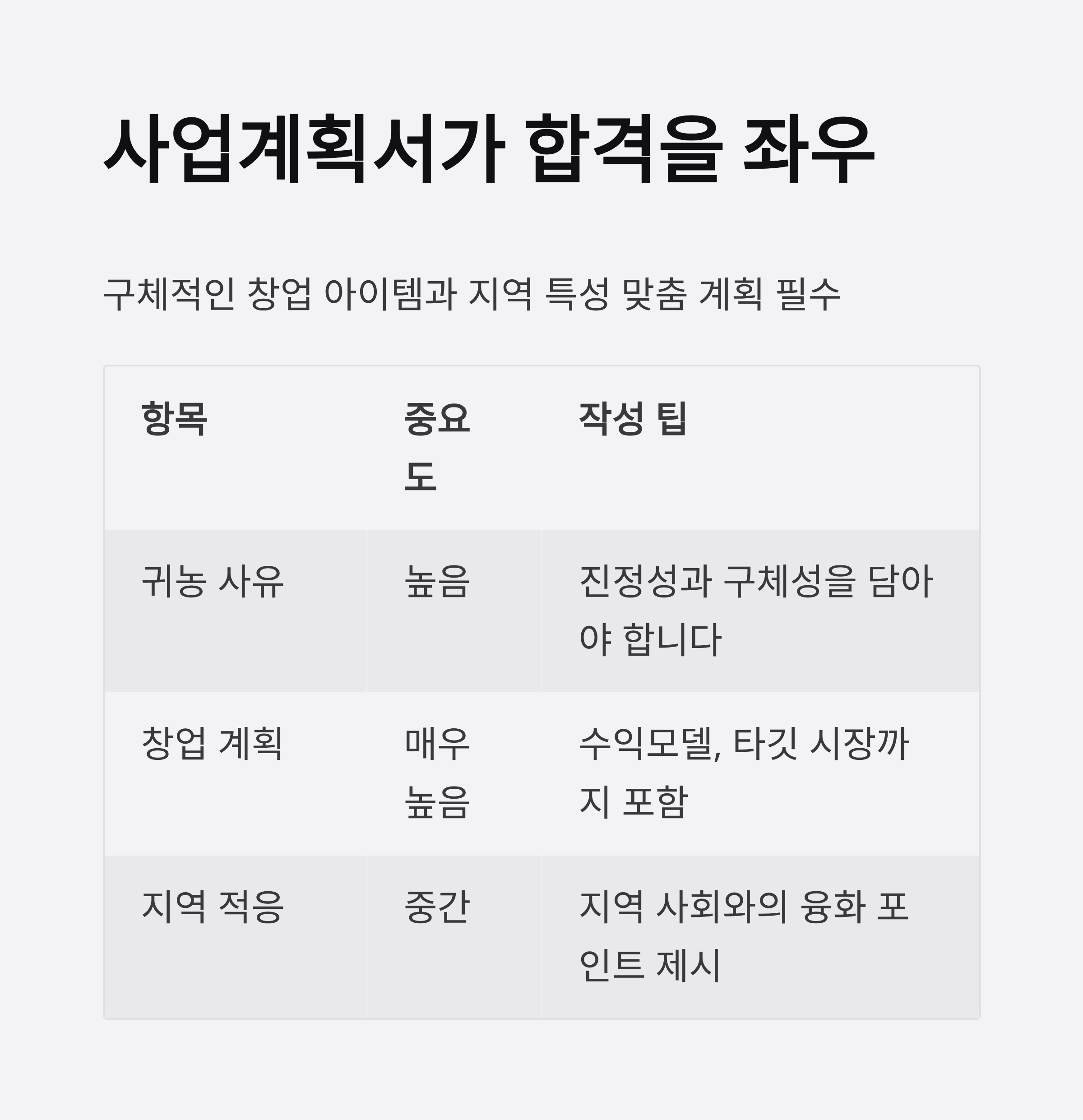 창업 아이템과 사업계획서가 합격 여부를 좌우합니다