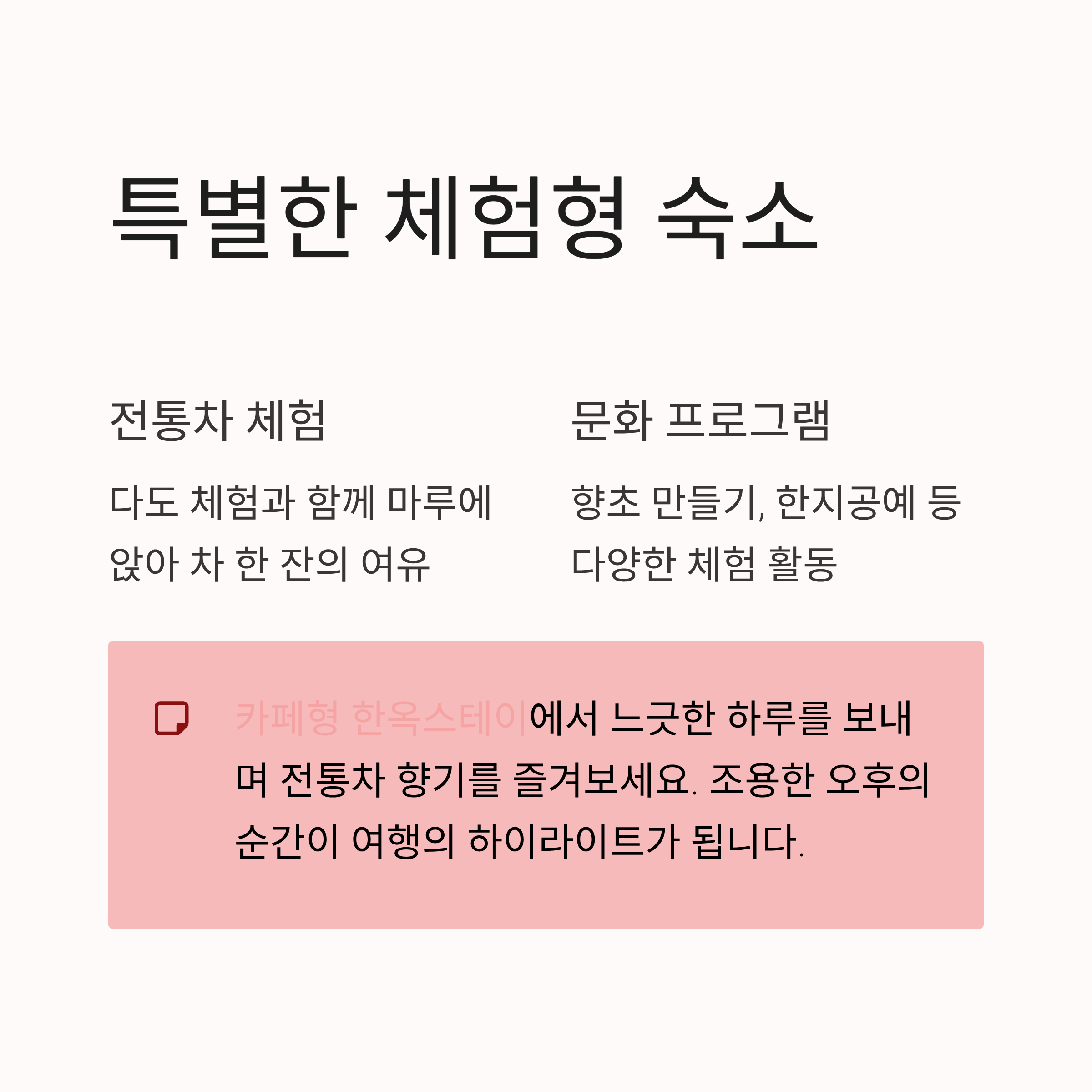 숙소 내에서 전통차를 직접 즐길 수 있는 ‘카페형 한옥스테이’도 인기예요.