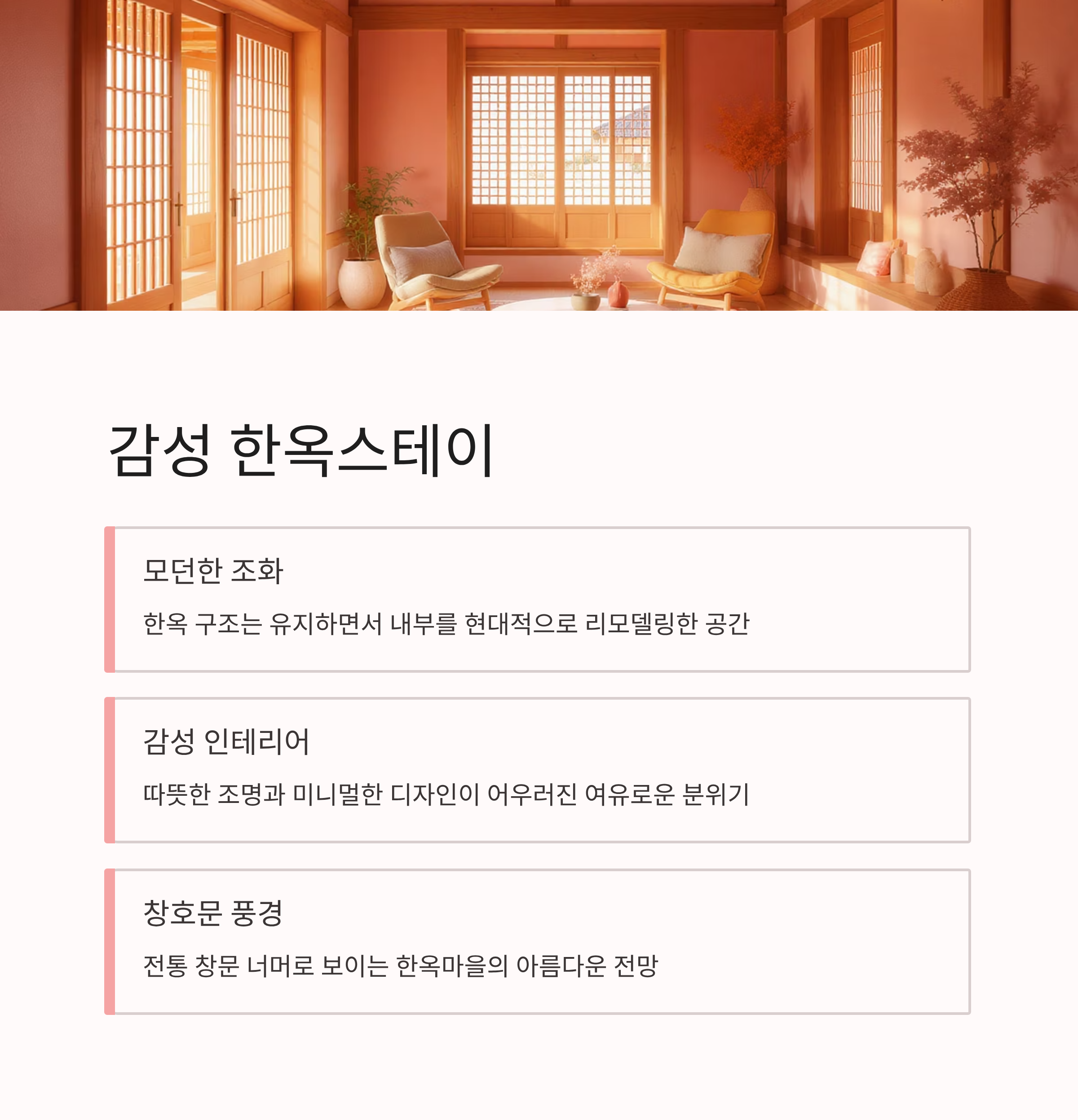 감성 한옥스테이, 모던함과 전통의 조화