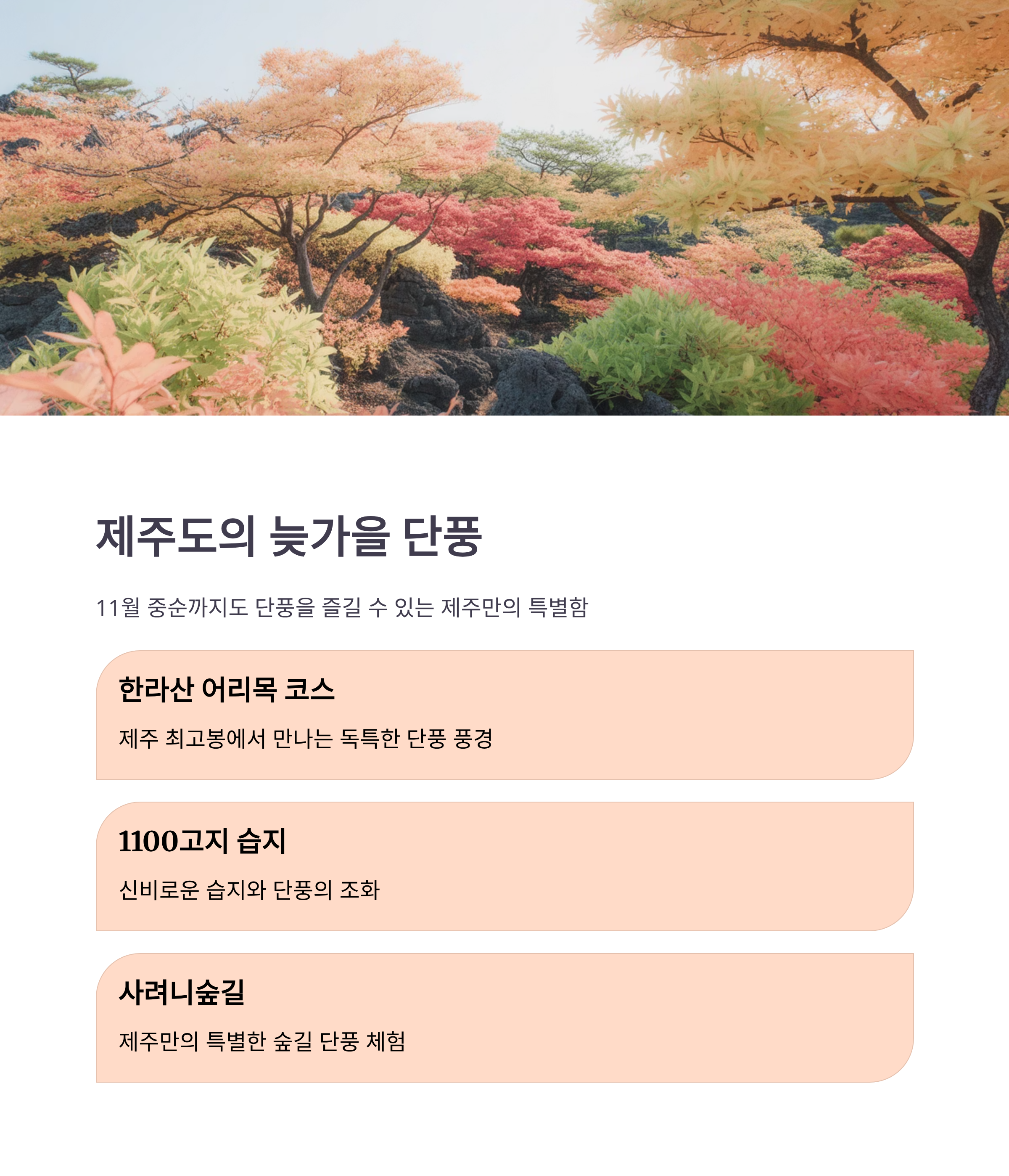 제주만의 독특한 단풍 풍경을 자랑합니다.
