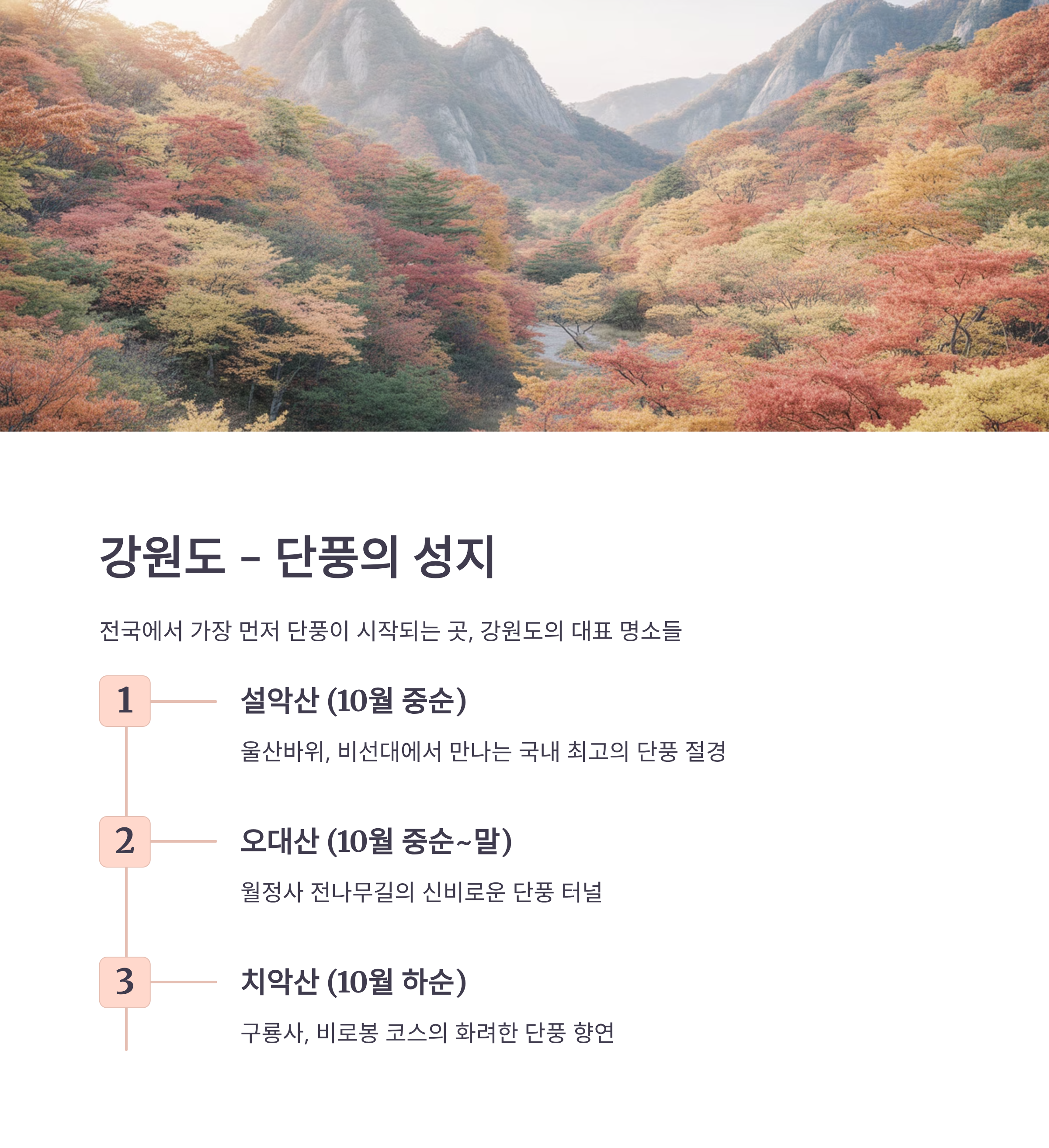 강원도는 단풍 시즌마다 전국 여행객이 모여드는 명소가 많습니다.
